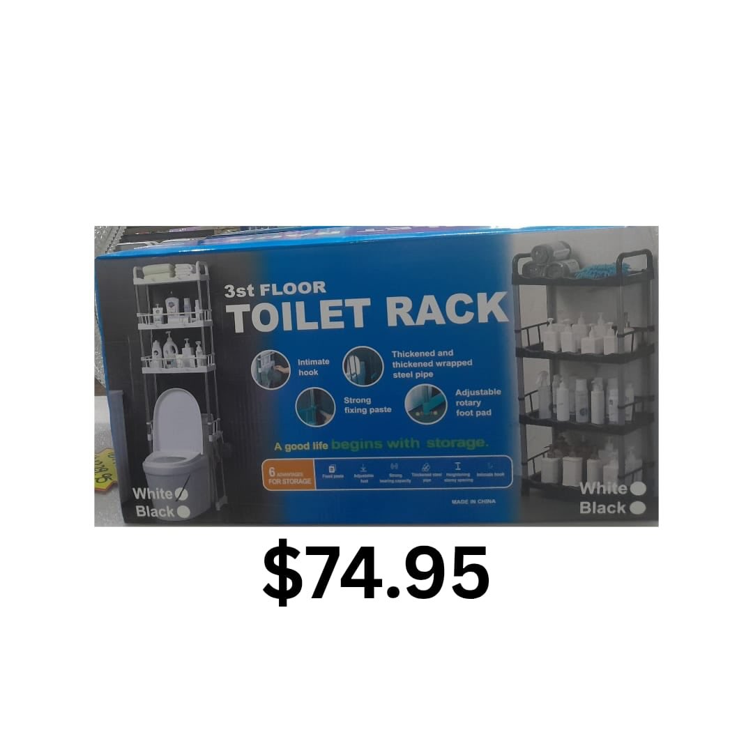 Organize your bathroom with this 3-tier over-toilet storage rack, designed to maximize space above your toilet. It features thickened steel pipes for durability, an intimate hook, strong fixing paste, and adjustable rotary foot pads. This versatile organizer is available in both white and black finishes.