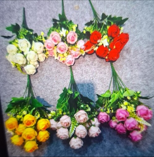 This listing features artificial rose bouquets. Available in multiple colors including white, pink, red, yellow, and magenta. These decorative flowers are perfect for arrangements and adding a touch of floral beauty to any space.