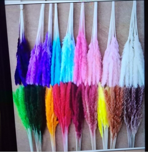 This listing features dried pampas grass stems in a variety of vibrant colors. These decorative stems are perfect for floral arrangements, home decor, and crafts. Available in multiple colors, including purple, blue, pink, white, green, orange, red, yellow, and brown.