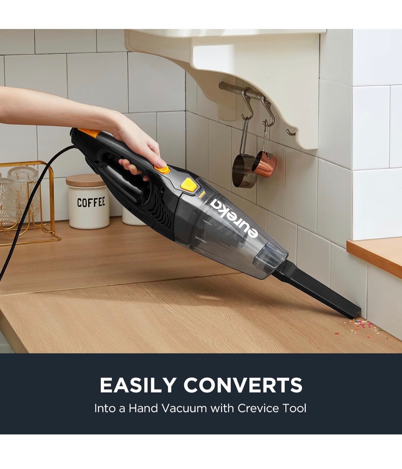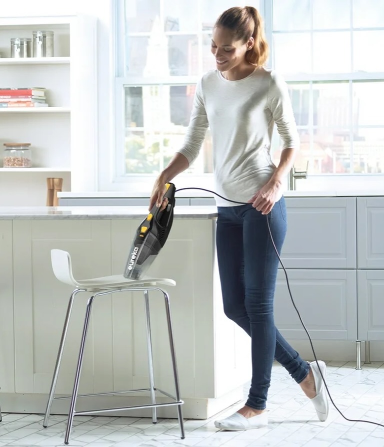 The Eureka Blaze 3-in-1 stick vacuum is a lightweight, corded multipurpose vacuum designed for versatile cleaning. Weighing less than 4 lbs, it’s ideal for hard floors, area rugs, and low pile carpets, featuring swivel steering for easy maneuverability and a large particle capture nozzle. It includes an 18 ft power cord, a 2 AMP powerful motor, an extra-large dust cup, and an onboard crevice tool, easily converting from a stick vac to a hand vac.