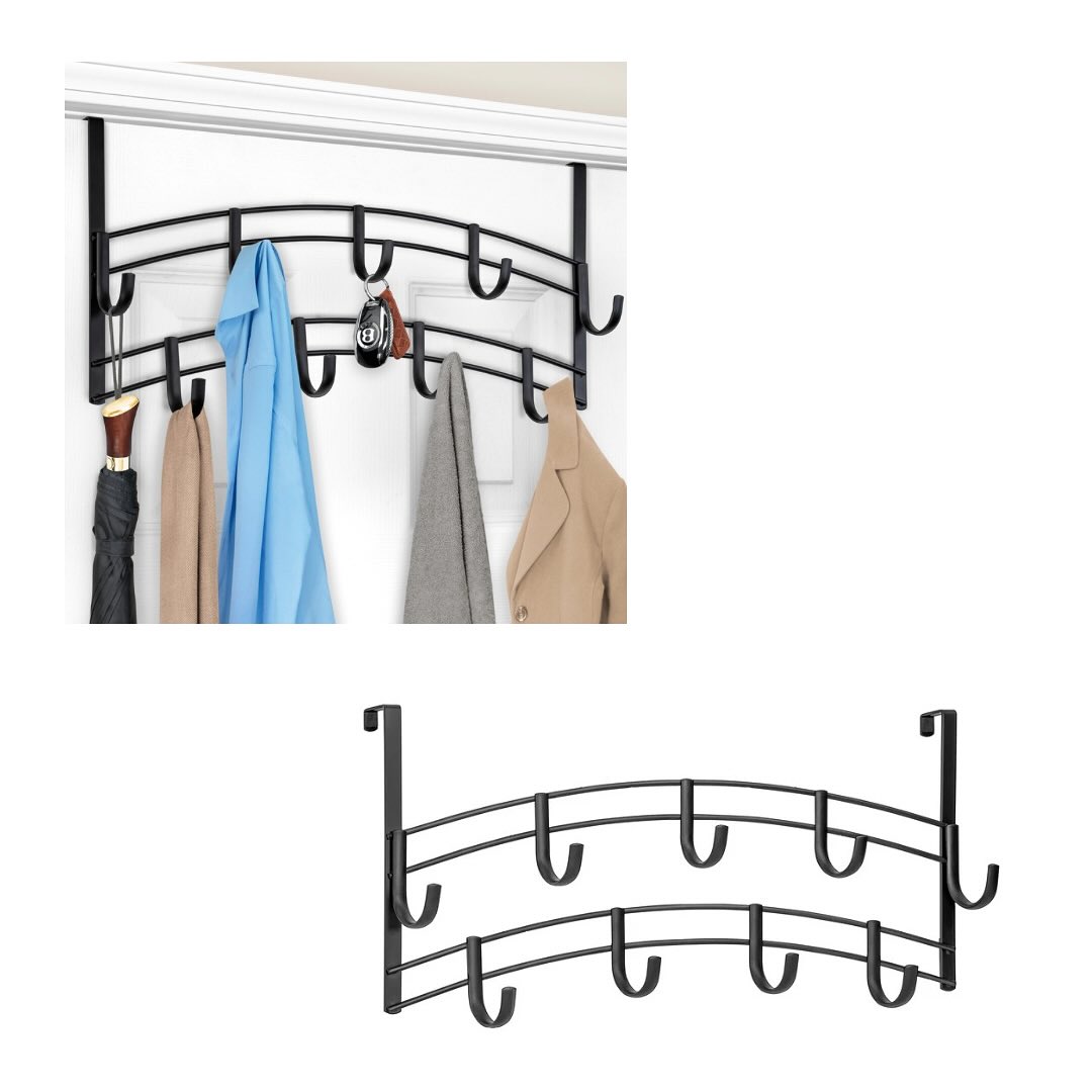 This is a black over-the-door hook rack with 9 hooks, designed for convenient storage of coats, jackets, bags, and more. The rack measures 45*7.3*26CM and is made of durable metal. It’s a practical solution for organizing entryways, bedrooms, or bathrooms without requiring any installation.