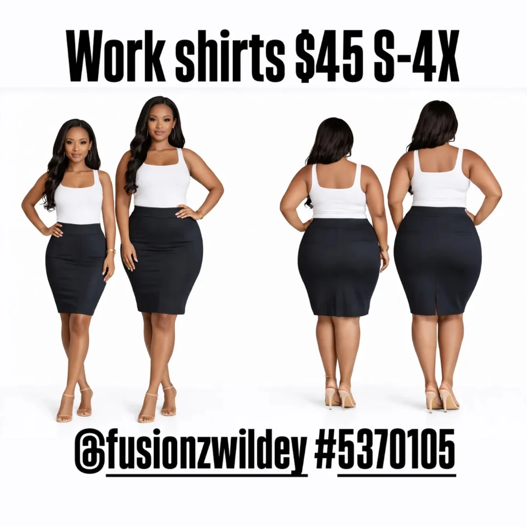 A classic black women’s pencil skirt, perfect for professional and office wear. This versatile work skirt features a tailored, knee-length design, offering a sleek and polished look. Available in a wide range of sizes from S to 4X.
