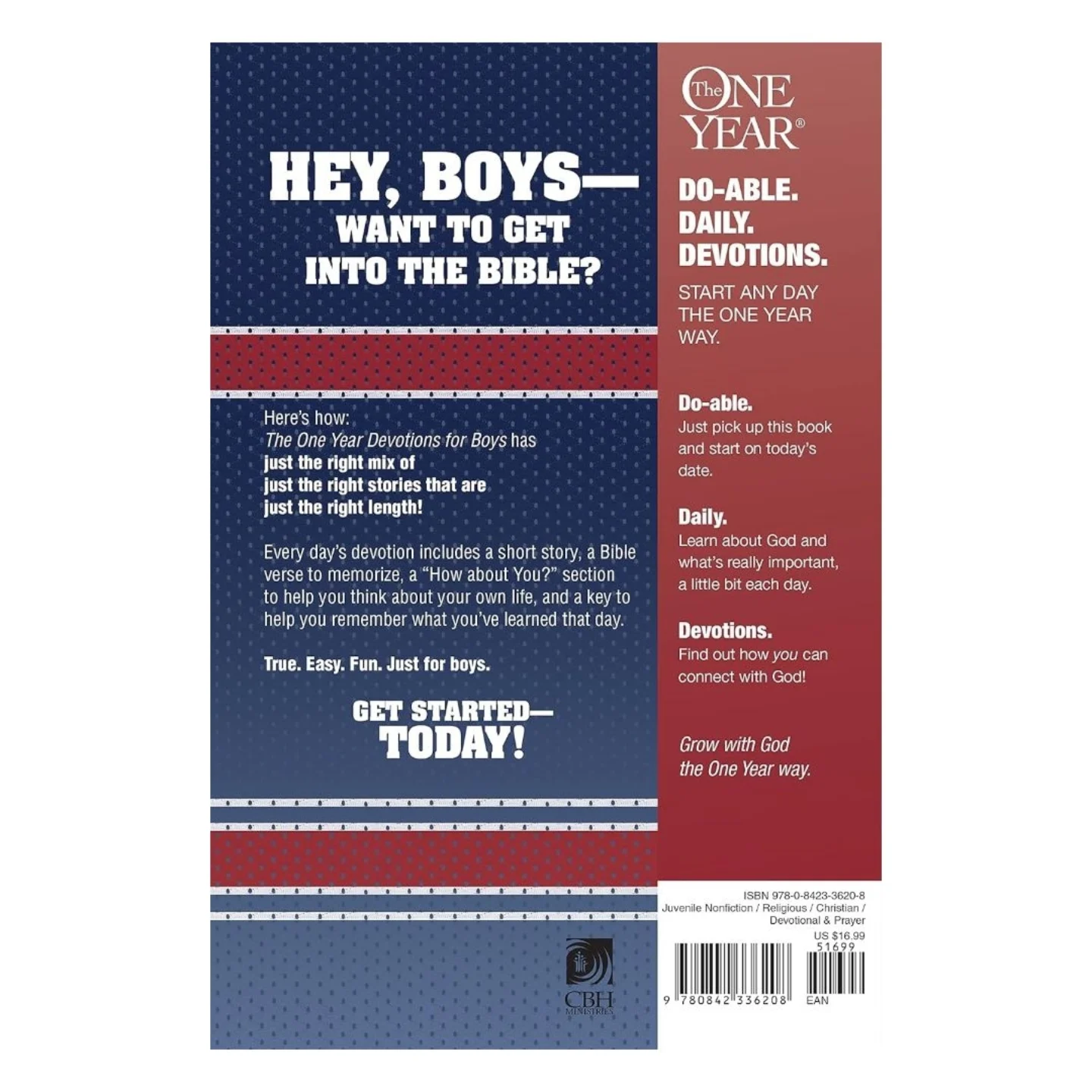 The One Year Devotions for Boys is a daily devotional book designed for boys aged 8 to 12. Featuring 365 daily readings, each devotion includes a short story, a Bible verse to memorize, and a ‘How about You?’ section to engage young readers in their faith and build character.