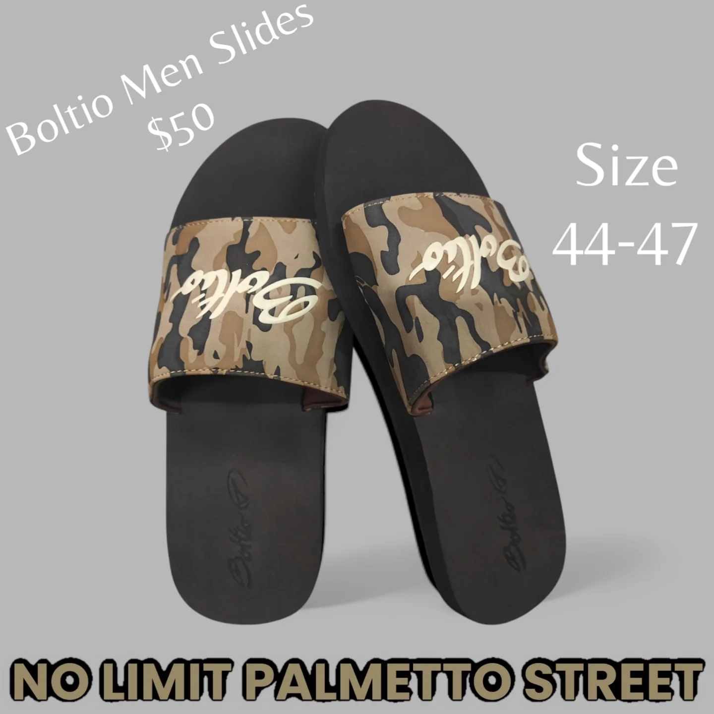 Step out in comfort with these Boltio men’s slides featuring a stylish camouflage print strap and a durable black sole. The Boltio logo is prominently displayed on both the strap and the footbed. These slides are available in a range of sizes from 44 to 47.
