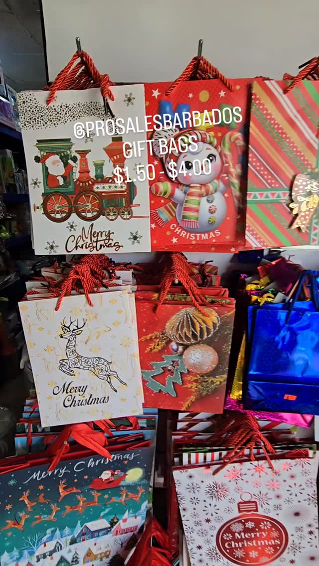 A variety of Christmas-themed gift bags with festive designs, including Santa, snowmen, reindeer, and more. These bags are perfect for holiday gift-giving. Available in different sizes with colorful, vibrant patterns.