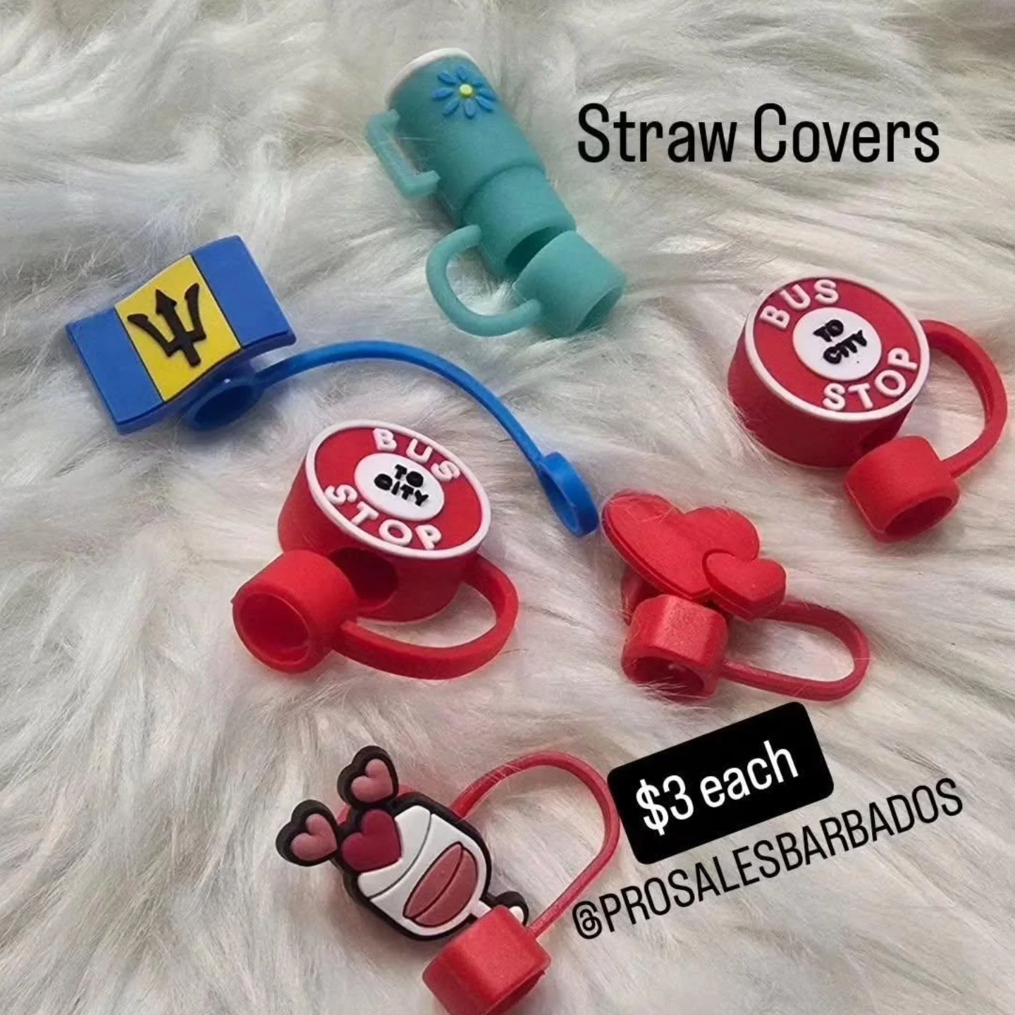 A set of playful straw covers featuring unique designs including a floral print and vibrant graphics. These covers are perfect for personalizing your drinks while keeping them hygienic. Available in various bright colors and designs.