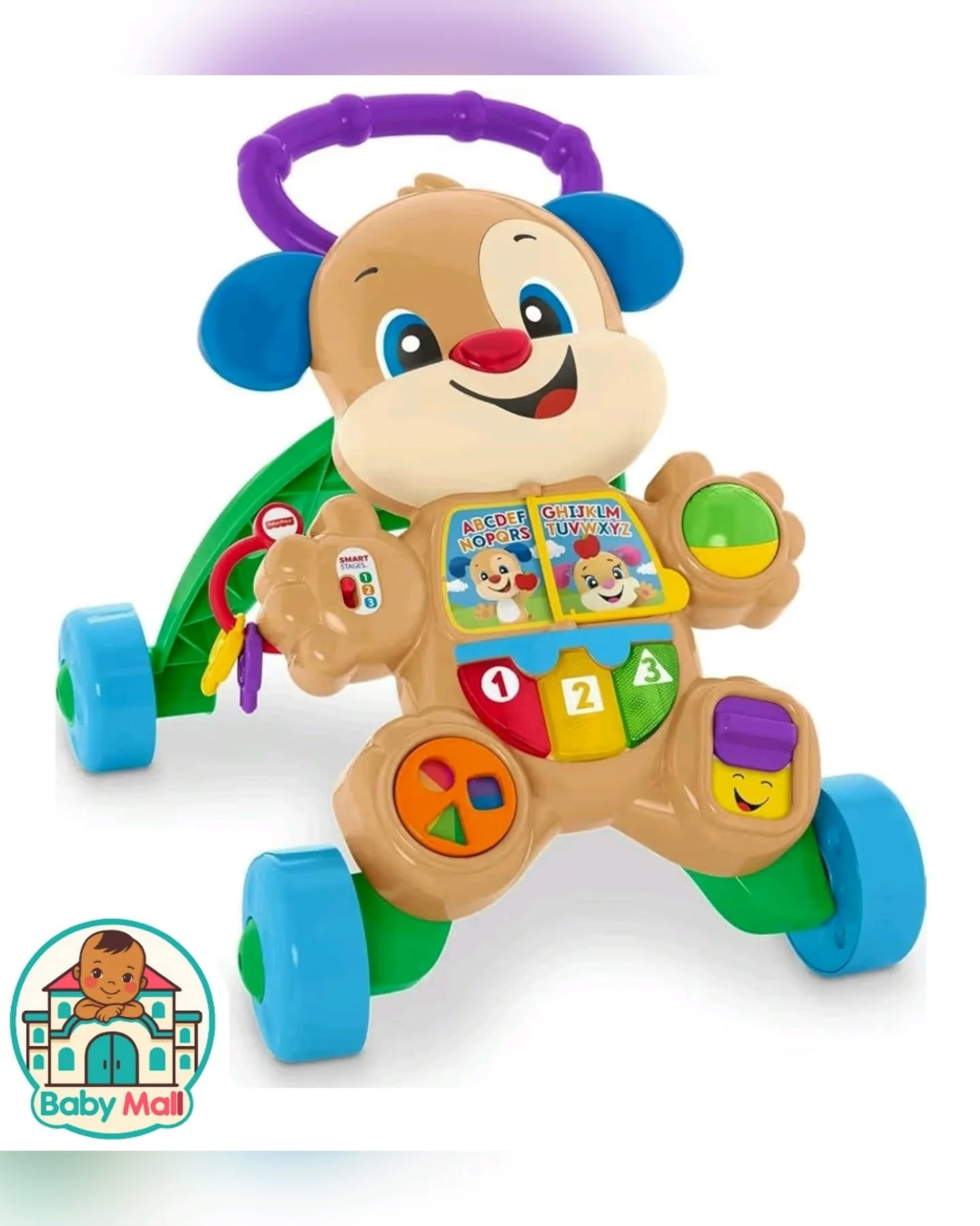 The Fisher-Price Laugh & Learn Smart Stages Puppy Walker is a 2-in-1 activity toy and walker designed for babies aged 6–36 months. It features over 75 songs, sounds, and phrases, teaching letters, numbers, colors, shapes, and even Spanish. Equipped with light-up keys, a flip book, spinners, and an easy-grip handle, it supports your baby’s first steps with a sturdy 4-wheel base.