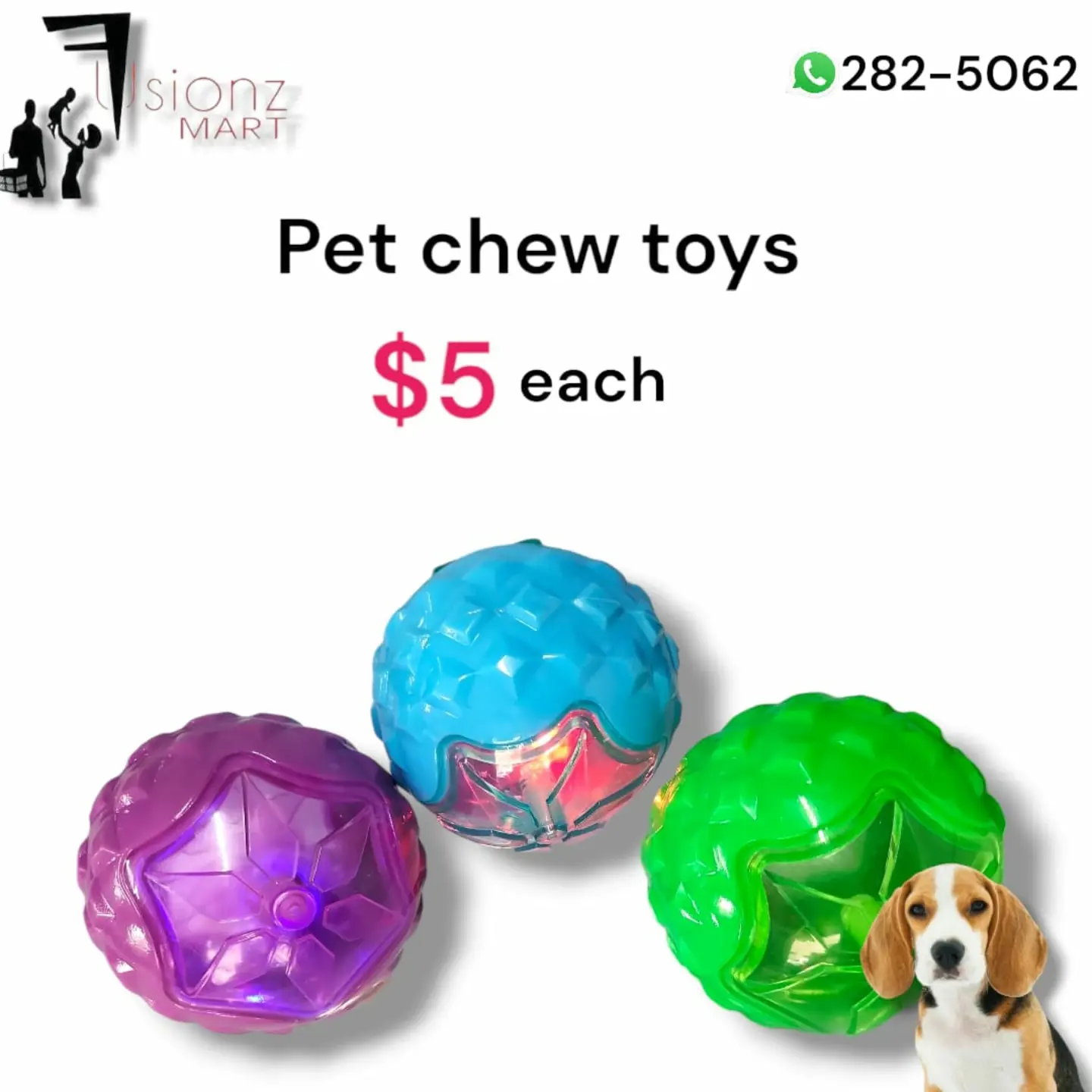 Durable and textured pet chew toys from Fusionz Mart, designed to provide entertainment and promote dental health for dogs and puppies. These interactive toys feature sound to keep pets engaged during playtime. Available in multiple vibrant colors.