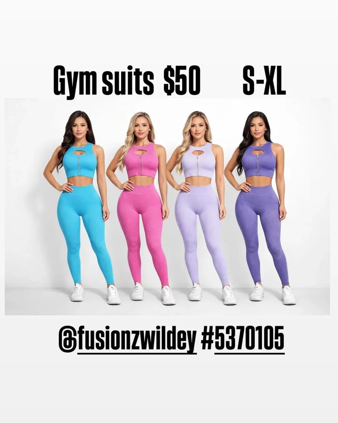 This Fusionz Wildey two-piece women’s gym suit features a stylish ribbed crop top with a keyhole cutout and front zipper, paired with matching high-waisted leggings. Perfect for workouts or casual activewear, available in sizes S-XL.