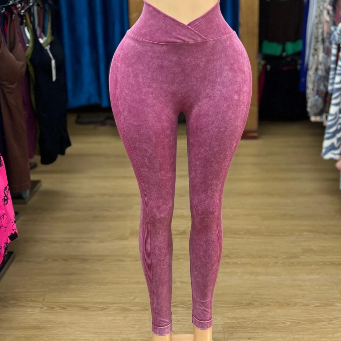 These women’s leggings from Fusionz feature a high-waisted design with a flattering crossover waistband. Available in multiple colors—light gray, burgundy, dark gray, and pink—they offer a comfortable fit perfect for everyday wear.