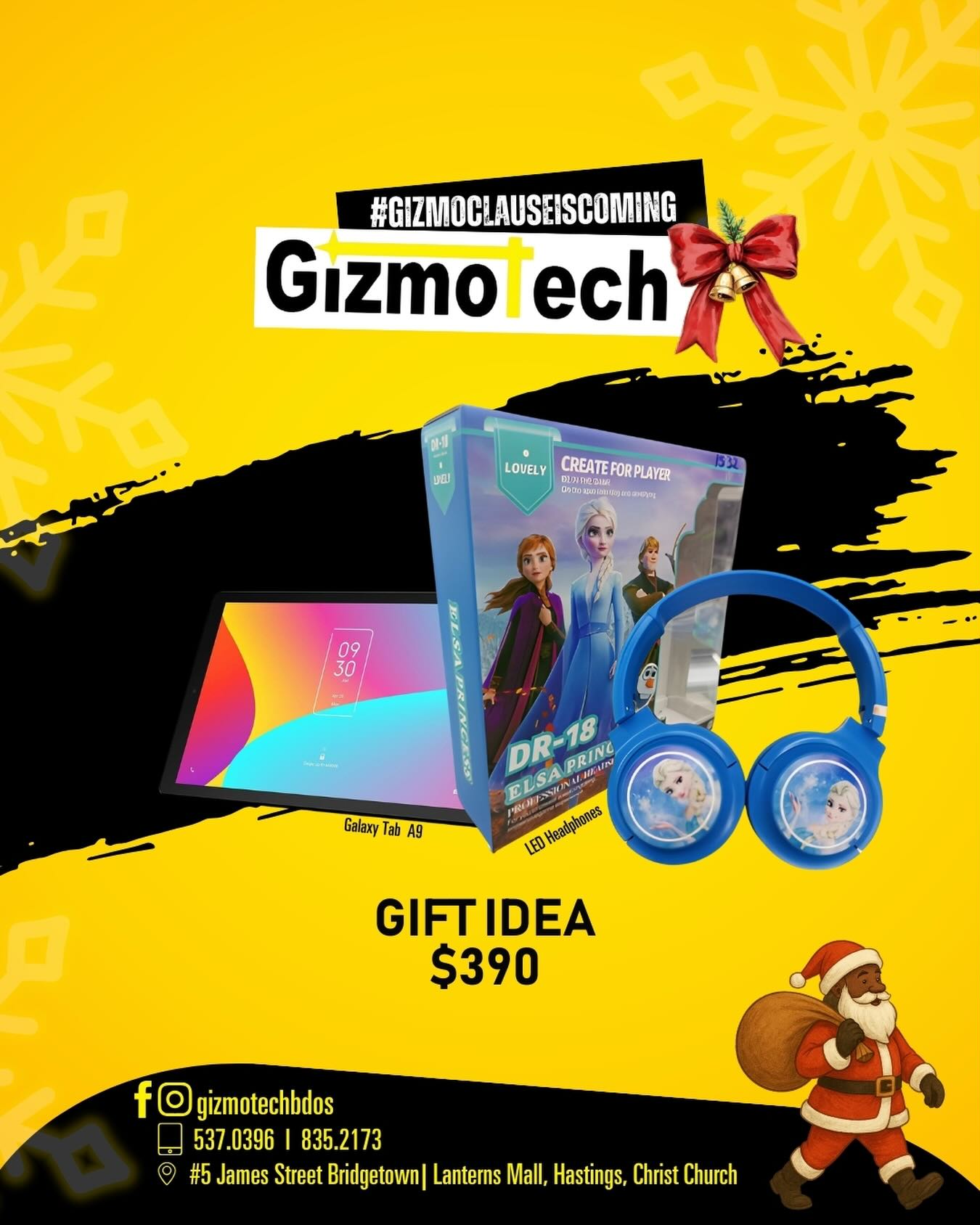 A festive gift bundle for girls featuring a Samsung Galaxy Tab A9 tablet and DR-18 Elsa Princess LED Headphones, perfect for making Christmas morning unforgettable.