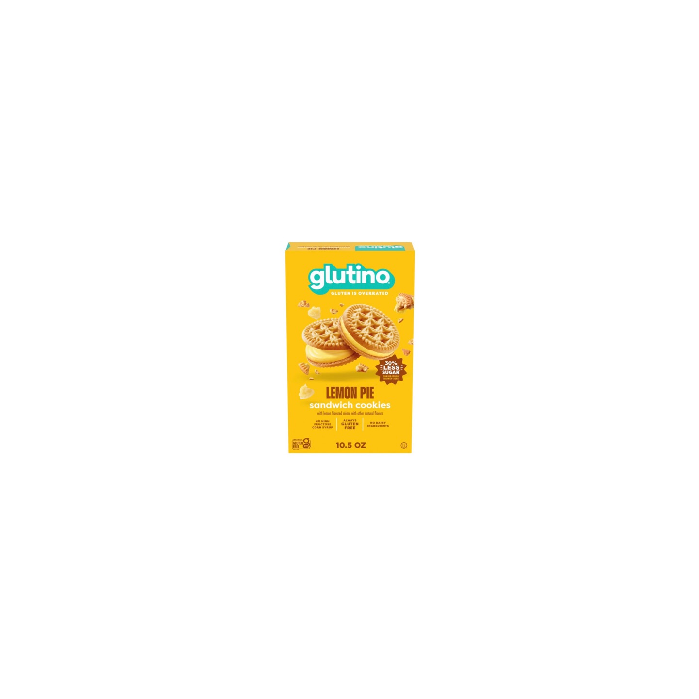 Enjoy these delicious Glutino Gluten Free Lemon Pie Sandwich Cookies. These cookies are made with lemon-flavored creme and are gluten-free, with no high fructose corn syrup and no dairy ingredients. Each package contains 10.5 oz of cookies.