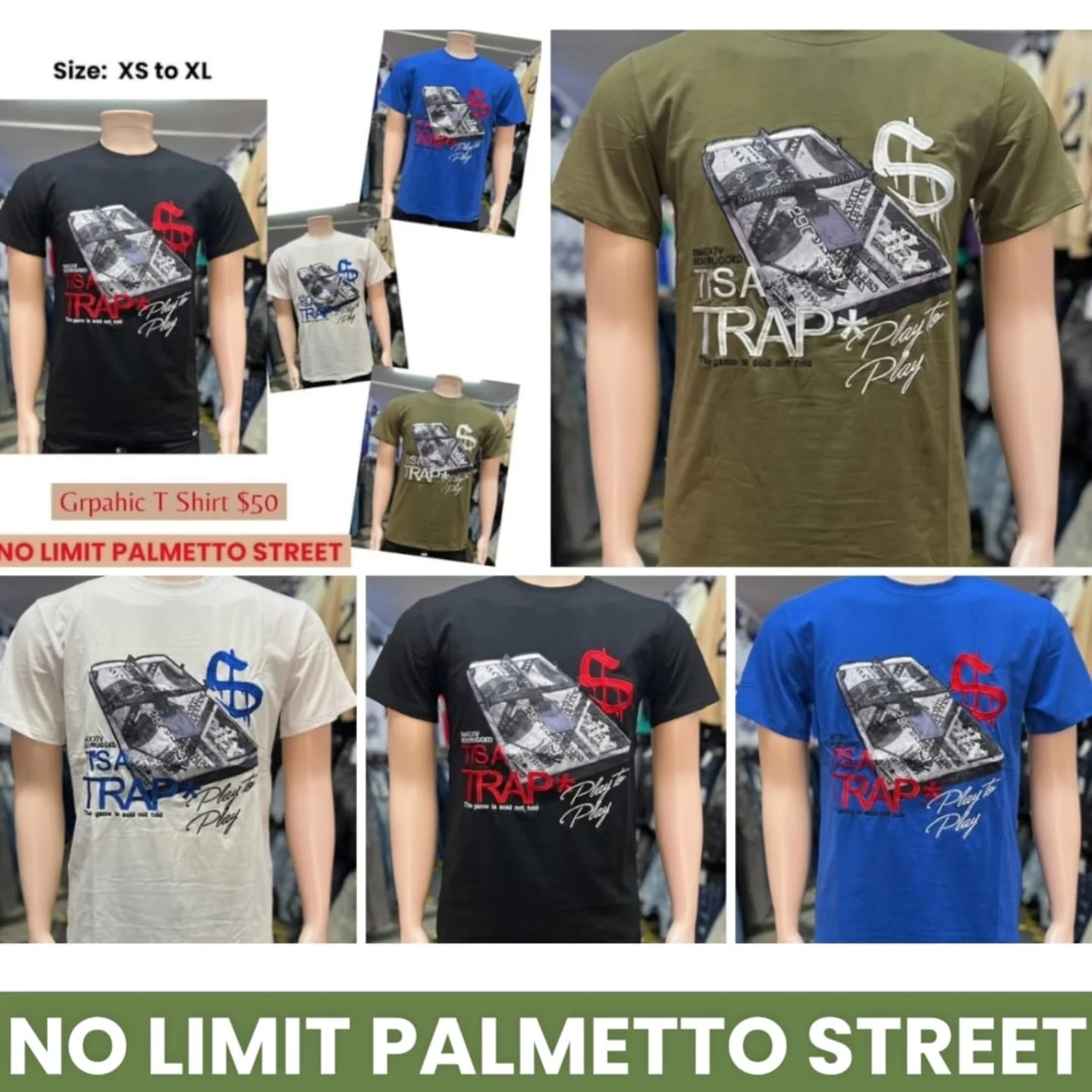 This is a graphic t-shirt with a money trap design. It is available in sizes XS to XL. The material appears to be cotton. This shirt is a great way to express your style.