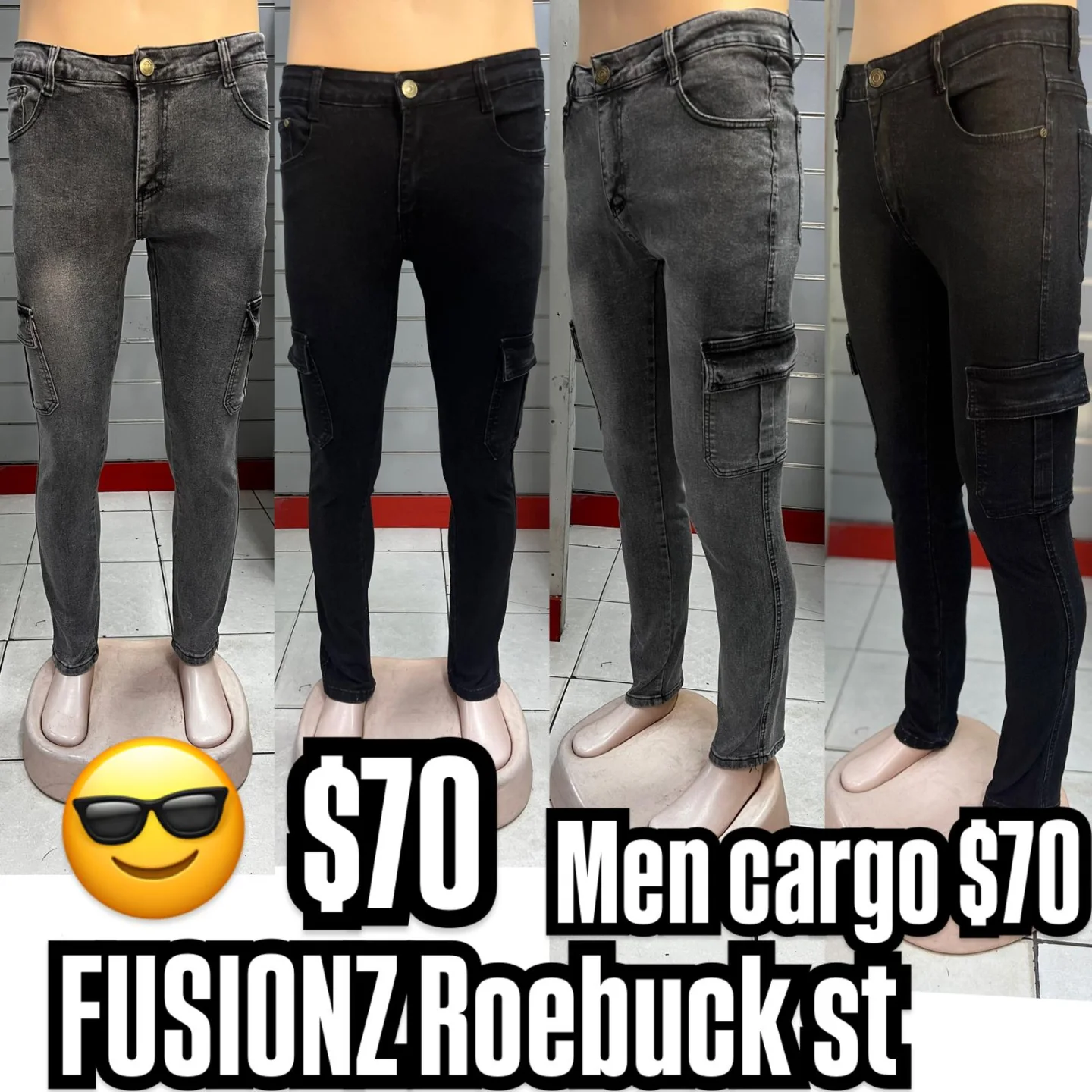 These men’s cargo jeans are available in gray and black, designed for a stylish and practical look. With multiple pockets and a slim fit, they offer both utility and modern fashion. Perfect for casual or outdoor wear.