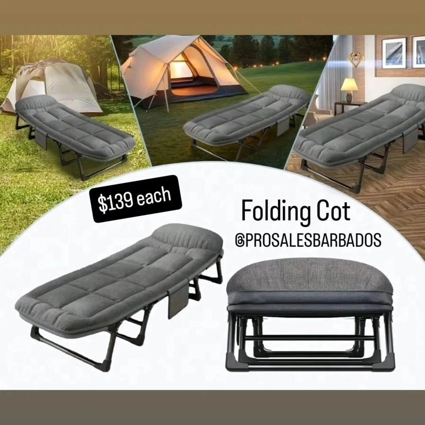 This grey folding cot offers convenience and comfort for both indoor and outdoor use, perfect for camping or as an extra bed at home. It features a cushioned top and a sturdy metal frame.