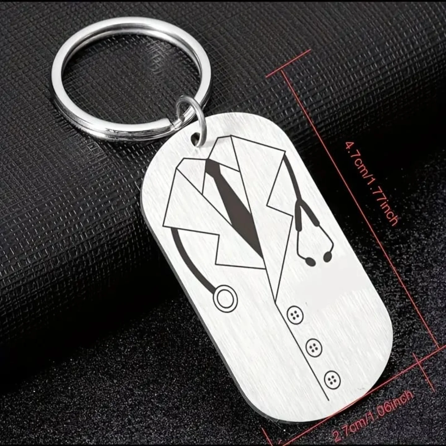 This durable stainless steel keychain from Heartening Gifts features an engraved design of a doctor’s lab coat, tie, and stethoscope. It serves as a thoughtful appreciation gift for doctors and medical professionals.