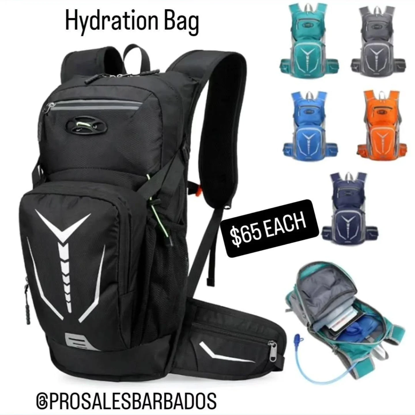 This hydration backpack is designed for outdoor enthusiasts, featuring a built-in bladder for convenient hydration. The adjustable straps ensure a comfortable fit, making it ideal for various activities. Available in an assortment of colors including black, teal, gray, blue, and orange.