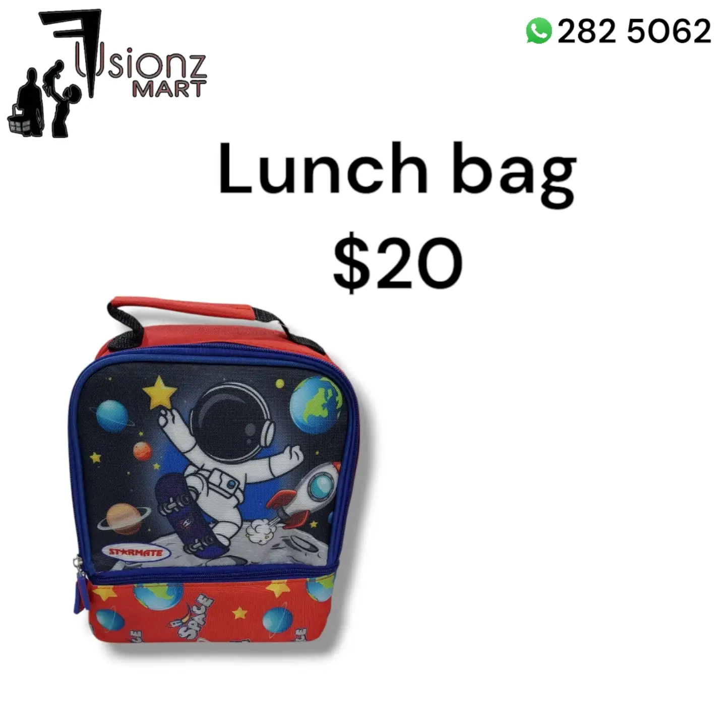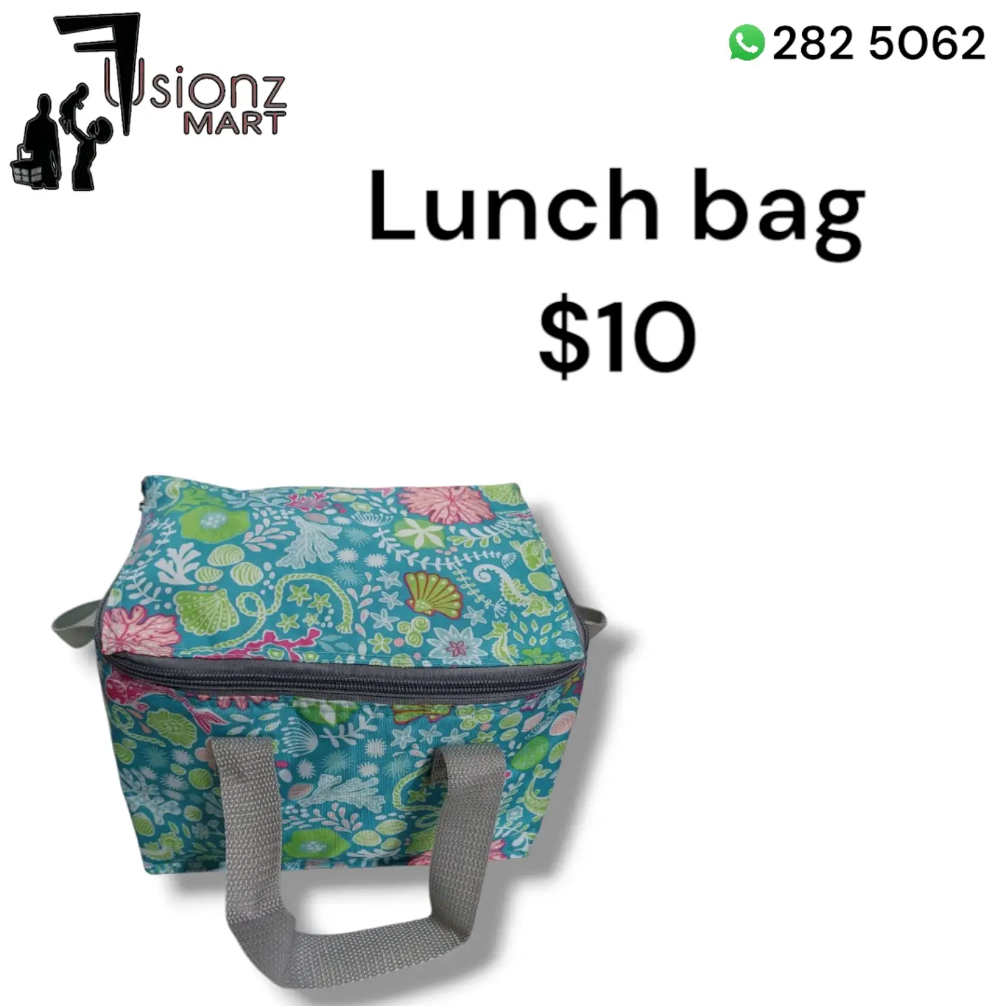 These Infan-Tec two-tiered lunch bags are designed for kids, featuring a convenient double compartment for organizing meals and snacks. Available in a light blue with playful patterns or an off-white with charming floral and butterfly designs, each bag includes a sturdy handle for easy carrying.