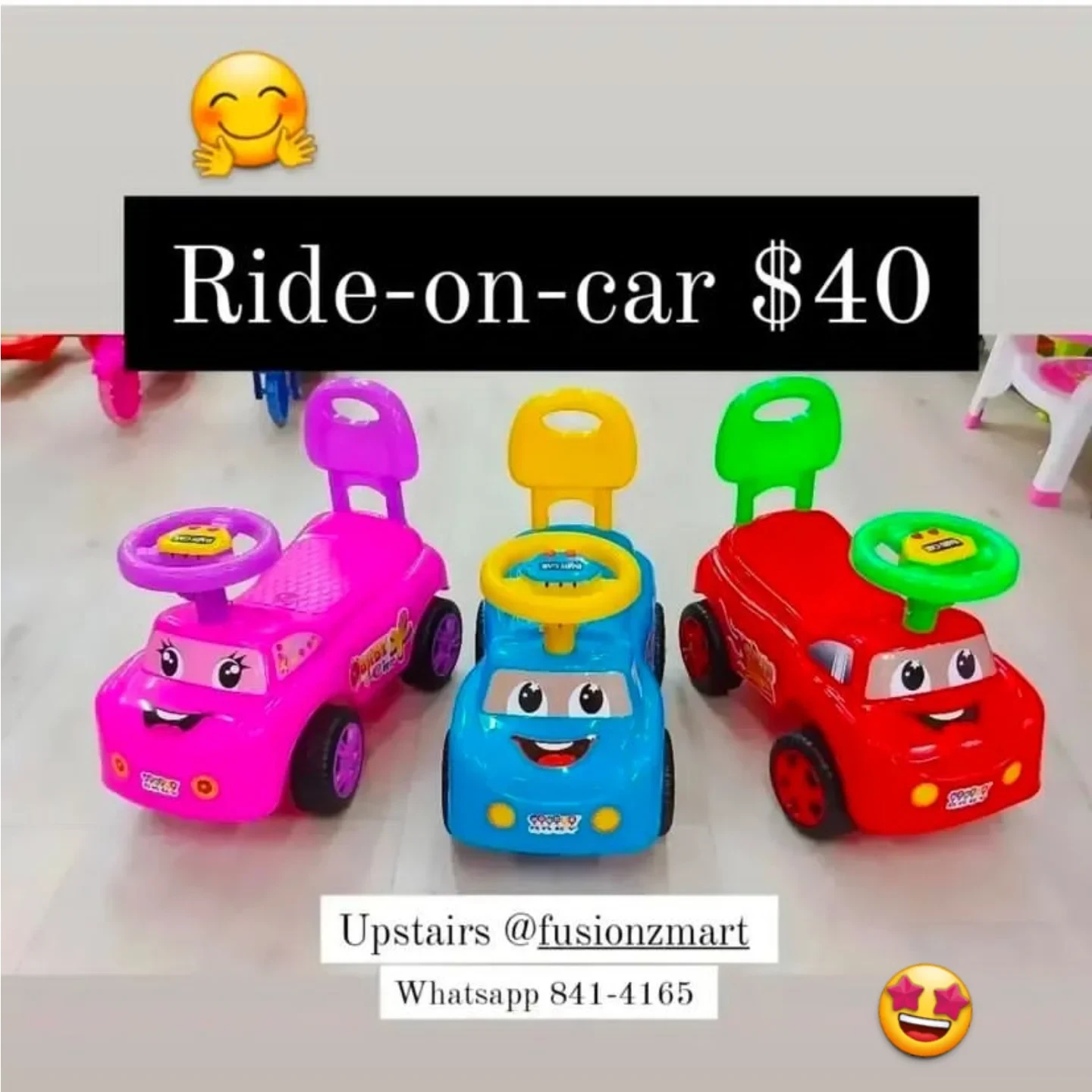 These are kids’ ride-on cars available in multiple colors. They are designed for children to sit in and push or be pushed. Perfect for indoor or outdoor play.