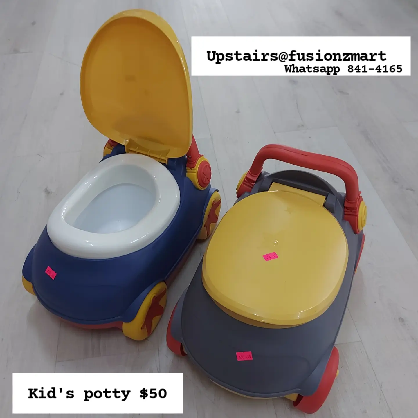 Durable plastic potty training toilets designed for children. These portable potties feature a comfortable seat and a removable inner bowl for easy cleaning, making potty training simpler for toddlers. Available in various colors.