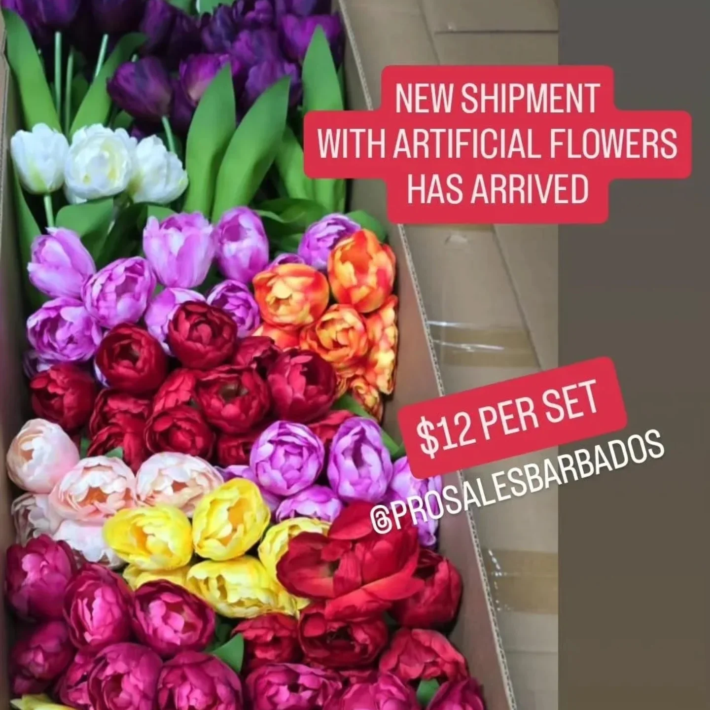This set includes a variety of vibrant artificial tulip flowers in multiple colors, perfect for decorating any space. The flowers are arranged in a box, showcasing colors like purple, red, orange, pink, yellow, and white. Ideal for adding a touch of nature-inspired charm to your home or event decor.