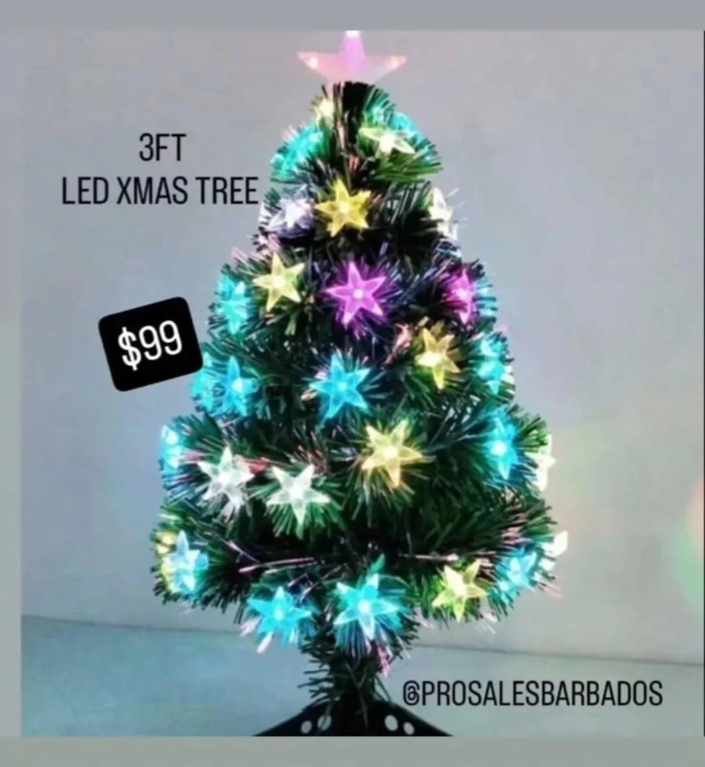 This vibrant 3ft LED Christmas tree is adorned with multicolor star-shaped lights and a star topper. Perfect for creating a festive atmosphere in small spaces. Requires batteries for operation.