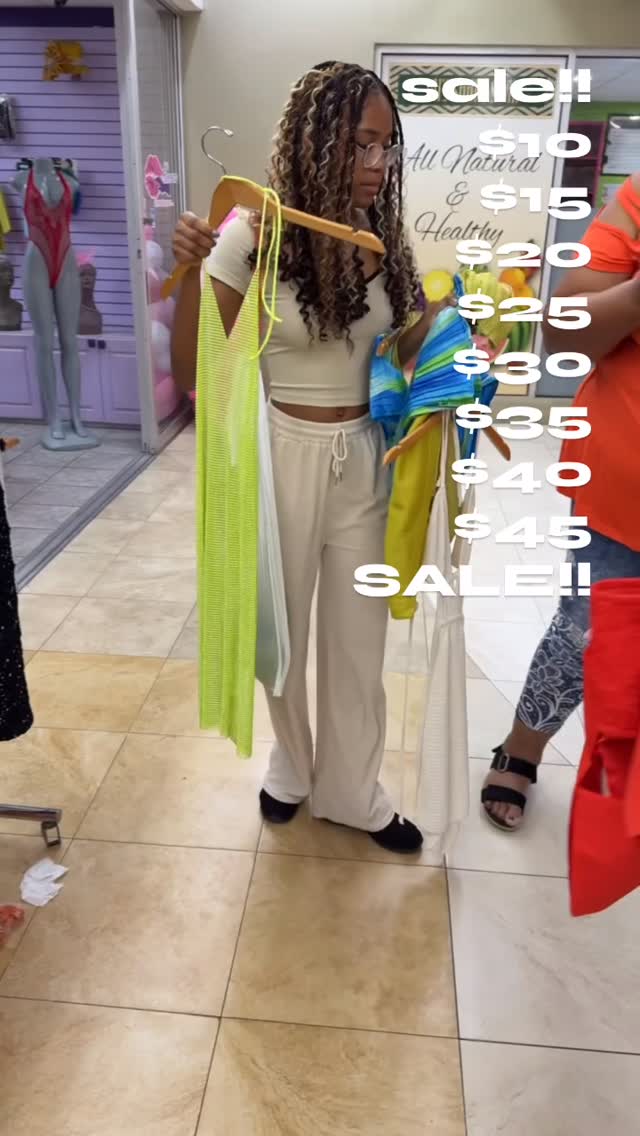 The image displays multiple women’s clothing items. The garments include a green mesh cover-up and a vibrant multicolor outfit. Suitable for casual or beach settings.