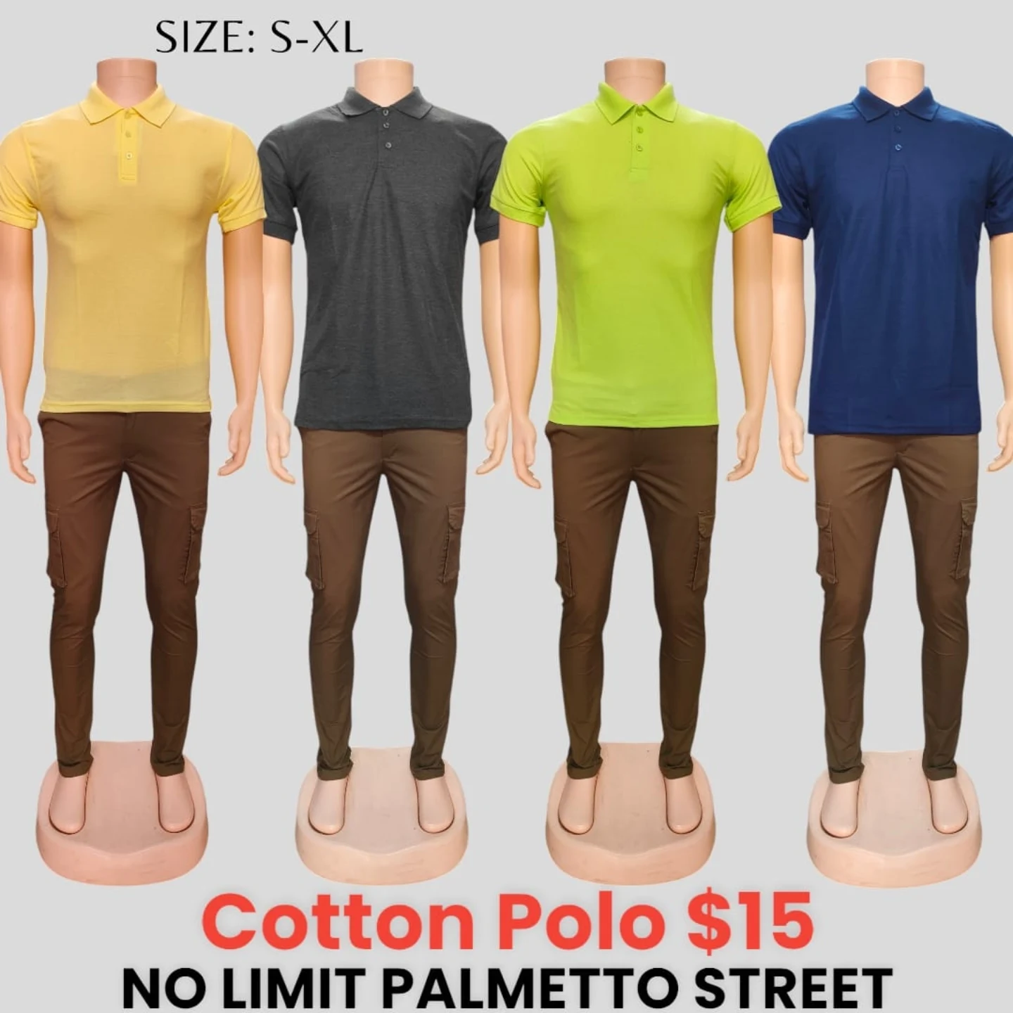 Classic men’s cotton polo shirts from No Limit, available in multiple vibrant colors. These short-sleeve collared shirts feature a three-button placket and are perfect for casual wear. Available in sizes S-XL.