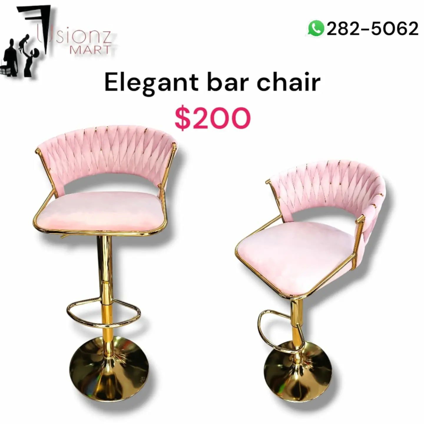 These elegant bar chairs feature a soft pink upholstered seat and a distinctive quilted backrest, supported by a sleek gold-finished metal frame and a sturdy adjustable base. Perfect for adding a touch of modern sophistication to any kitchen island or bar area.