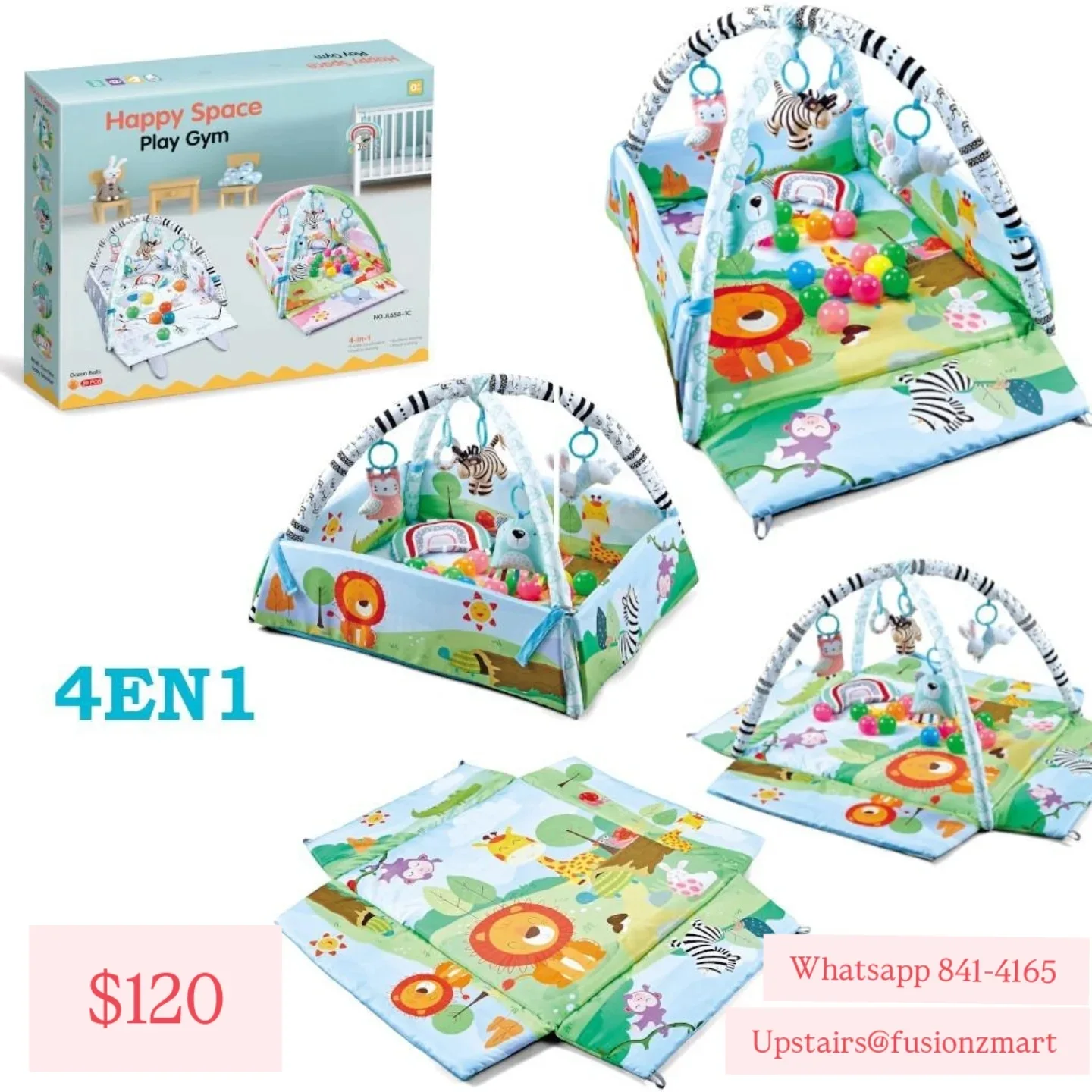 This is a playmat with a waterproof surface, featuring a cute woodland animal design with bears, squirrels, and monkeys. It measures 58″x70″ and is suitable for babies and children. The playmat is foldable for easy storage.