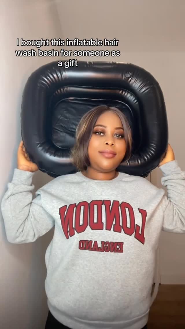 A convenient and portable inflatable basin designed for washing hair, ideal for home use or as a thoughtful gift. This product includes all necessary attachments for immediate use.