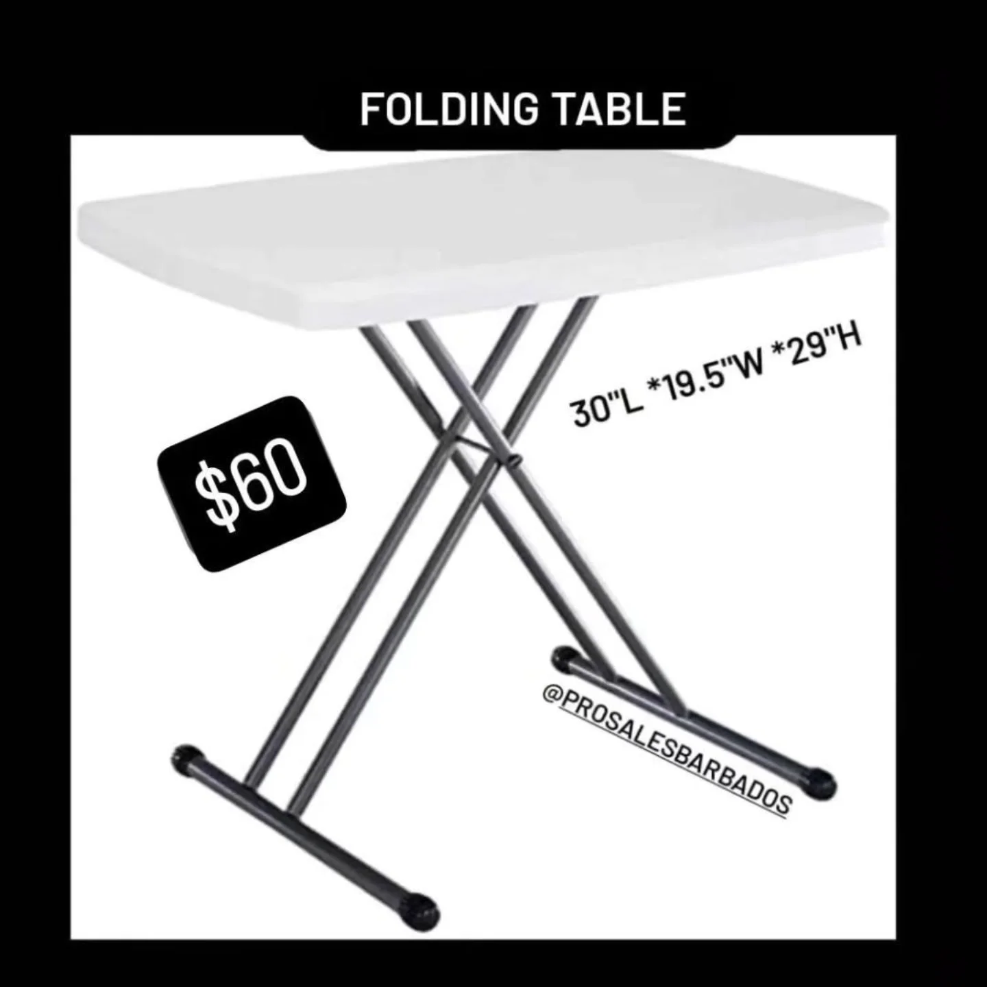 This white folding table is perfect for versatile use. It features a simple design with dimensions of 30″L x 19.5″W x 29″H. Ideal for both indoor and outdoor settings.
