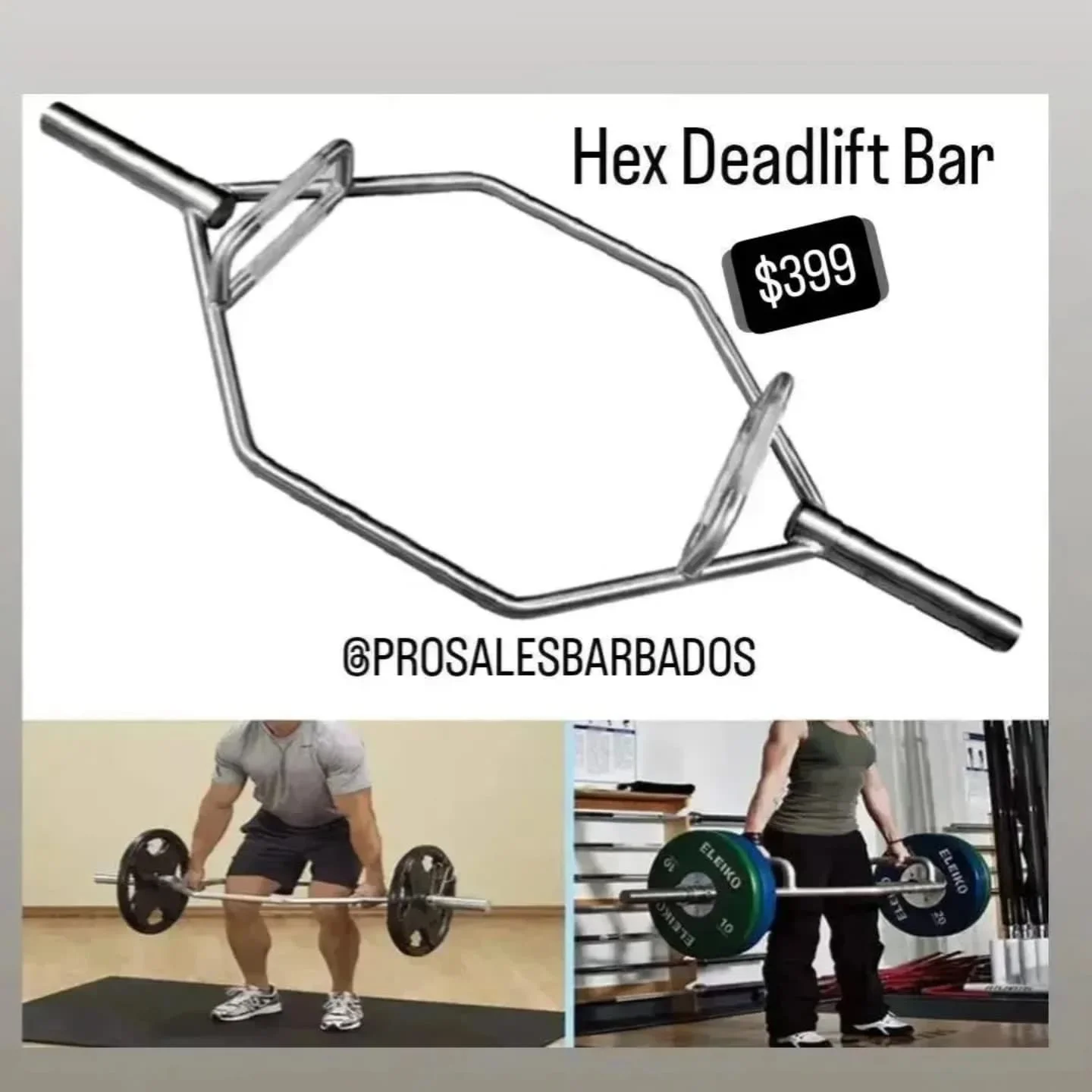 The Hex Deadlift Bar by Pro Sales is designed for strength training and offers comfort with its hexagonal shape, which balances weight and reduces strain on your back. Suitable for various lifting exercises, it provides a robust construction for intensive use.