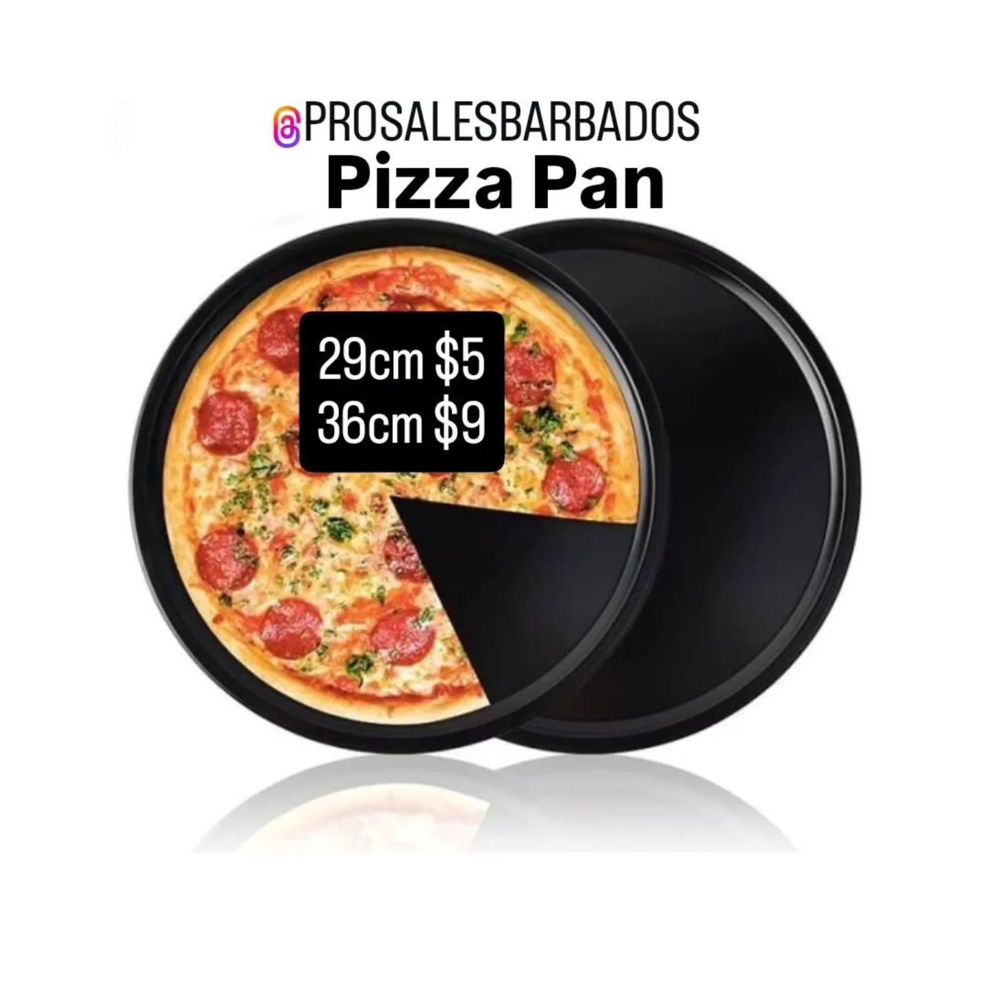 Black pizza pan available in 29cm and 36cm sizes. Ideal for baking homemade pizzas with a crispy crust. Durable and easy to clean.