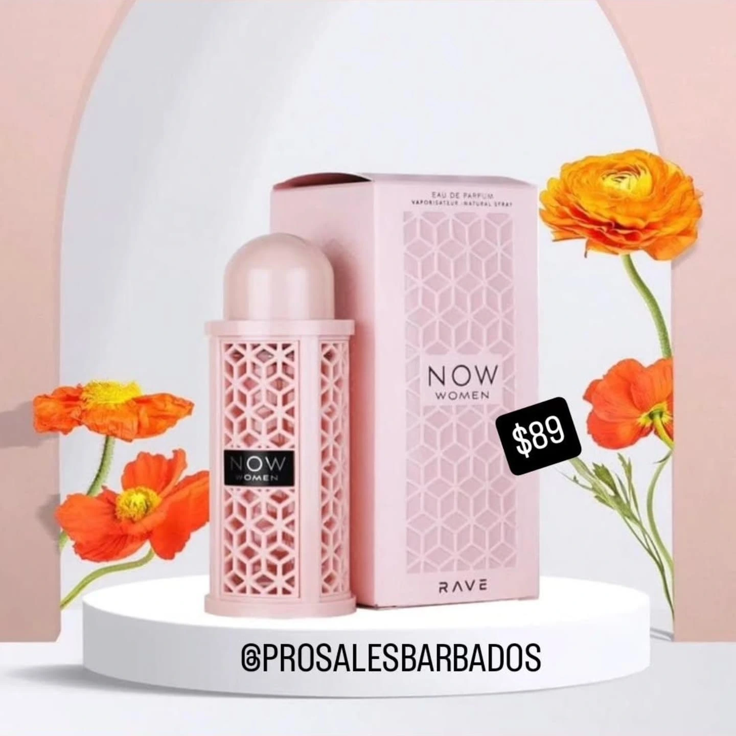 RAVE NOW Women Eau de Parfum is a fragrance designed for women, presented in a stylish pink bottle and box with a geometric pattern. Available from Pro Sales.