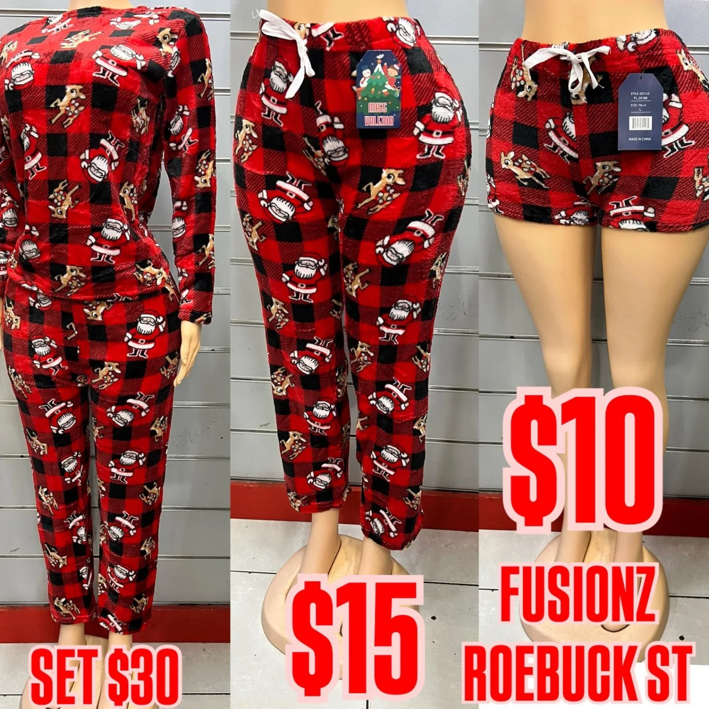 These red women’s shorts feature a festive Christmas pattern with reindeer and snowflakes. They are made with a comfortable fabric and have a drawstring waist for an adjustable fit. Perfect for holiday lounging or sleepwear.