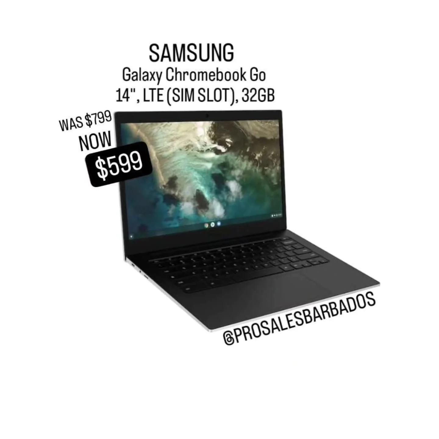 The Samsung Galaxy Chromebook Go features a 14-inch display and comes with LTE capability and 32GB storage, making it a versatile device for everyday tasks and connectivity on the go. Its sleek design and compact form factor are ideal for students and professionals alike.