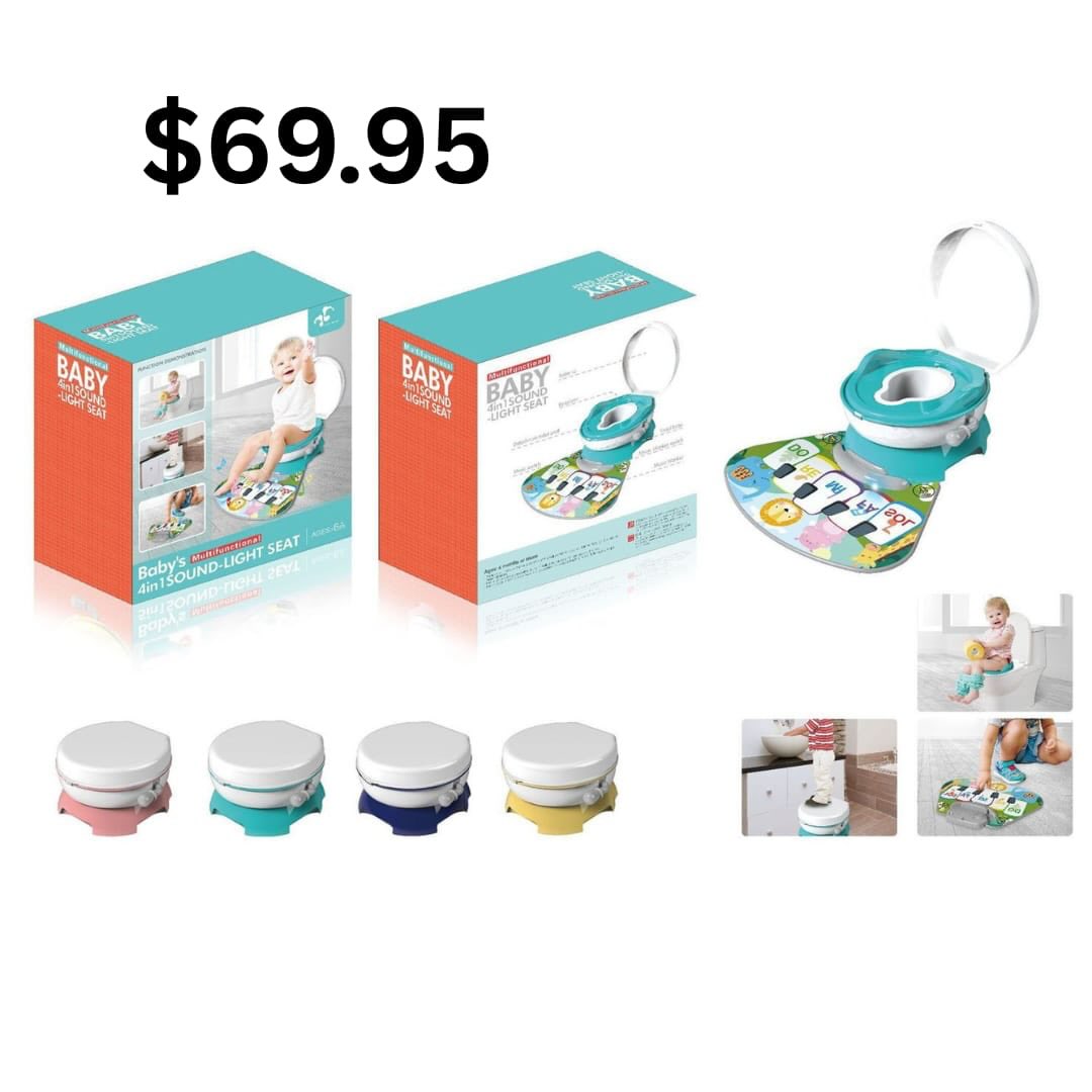 This innovative Baby’s 4-in-1 Sound-Light Potty Training Seat is designed to make potty training fun and engaging for toddlers. It functions as a comfortable potty seat, a musical mat with sound and light effects, and converts into a sturdy step stool, offering versatile use in the bathroom. Available in multiple colors.