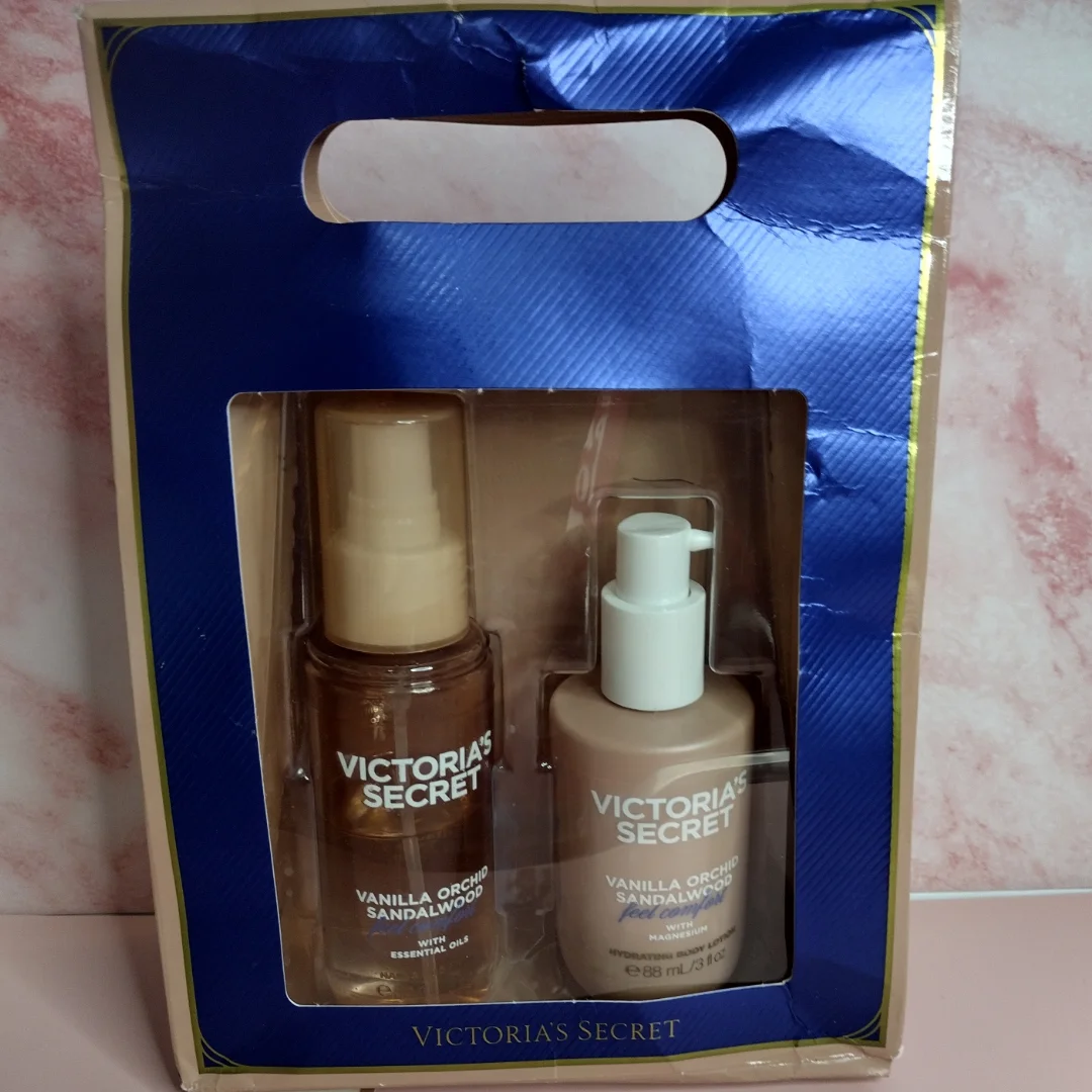 This Victoria’s Secret set features a Vanilla Orchid Sandalwood body lotion and mist. The lotion is 88 ml / 3 fl oz and is hydrating with magnesium. The mist contains essential oils. This set is perfect for anyone looking for a luxurious body care experience.