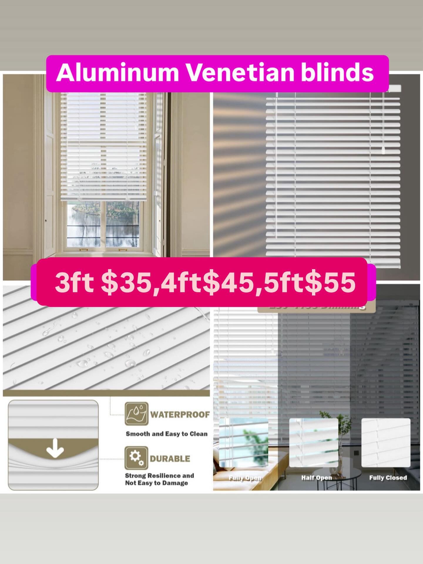 These white aluminum Venetian blinds offer a sleek and functional window covering solution. Designed to be waterproof, durable, smooth, and easy to clean, they are suitable for various rooms. Available in 3ft, 4ft, and 5ft widths.