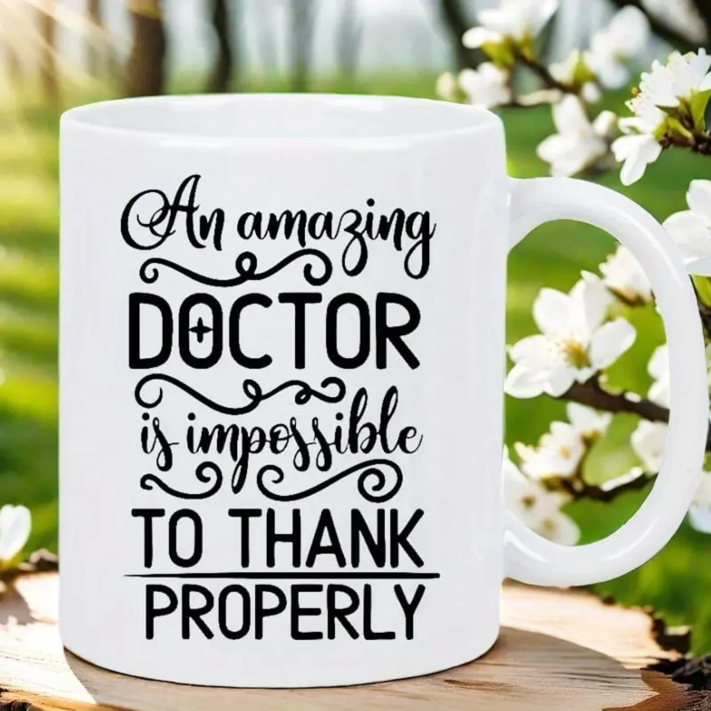 This white ceramic mug features the heartfelt quote ‘An amazing DOCTOR is impossible TO THANK PROPERLY’ in black script. It’s an ideal 11oz appreciation gift for doctors and medical professionals, perfect for showing gratitude.