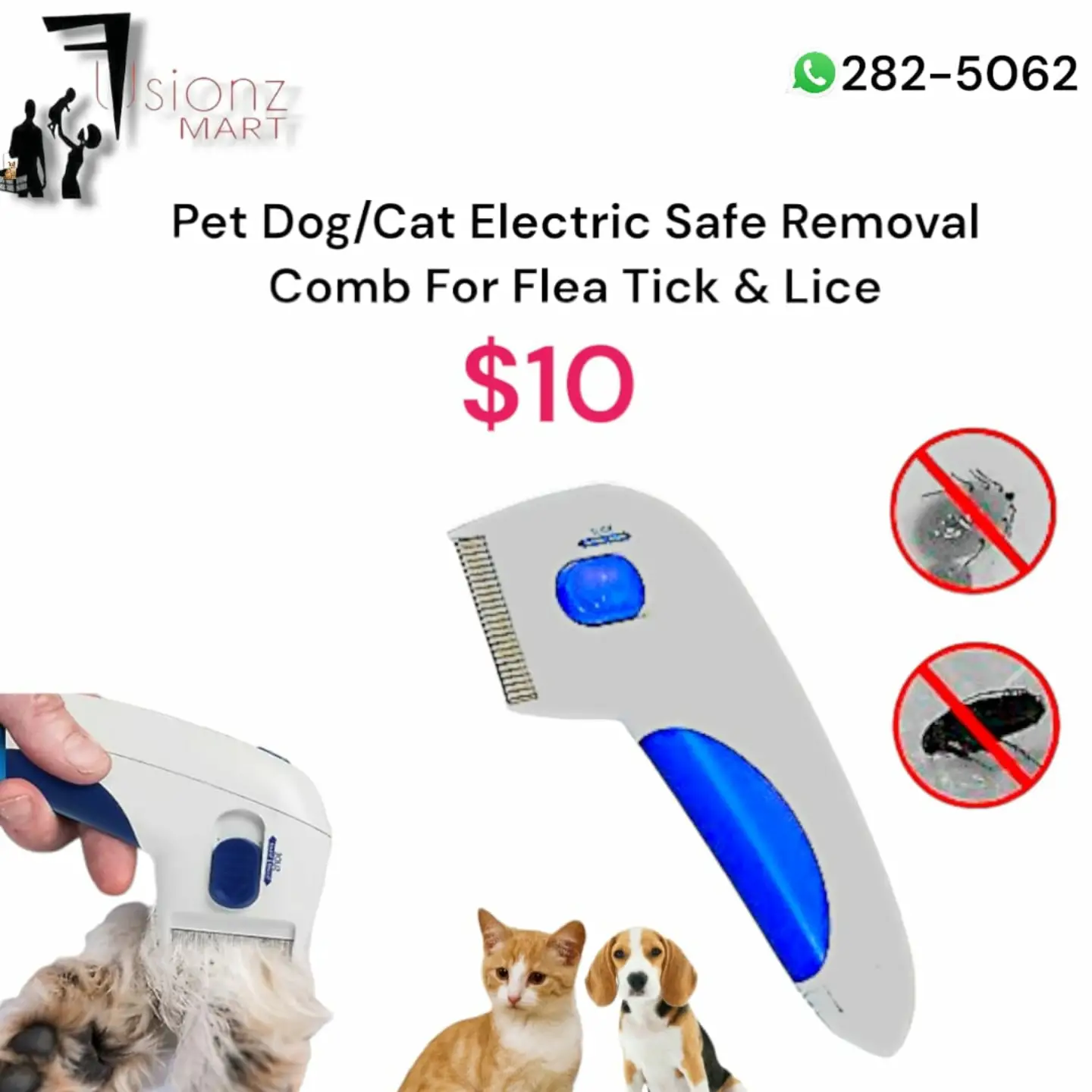 This FUSIONZ MART electric comb is designed for the safe and effective removal of fleas, ticks, and lice from your pets. Suitable for both dogs and cats, this white and blue device provides a convenient solution for pet grooming and pest control.