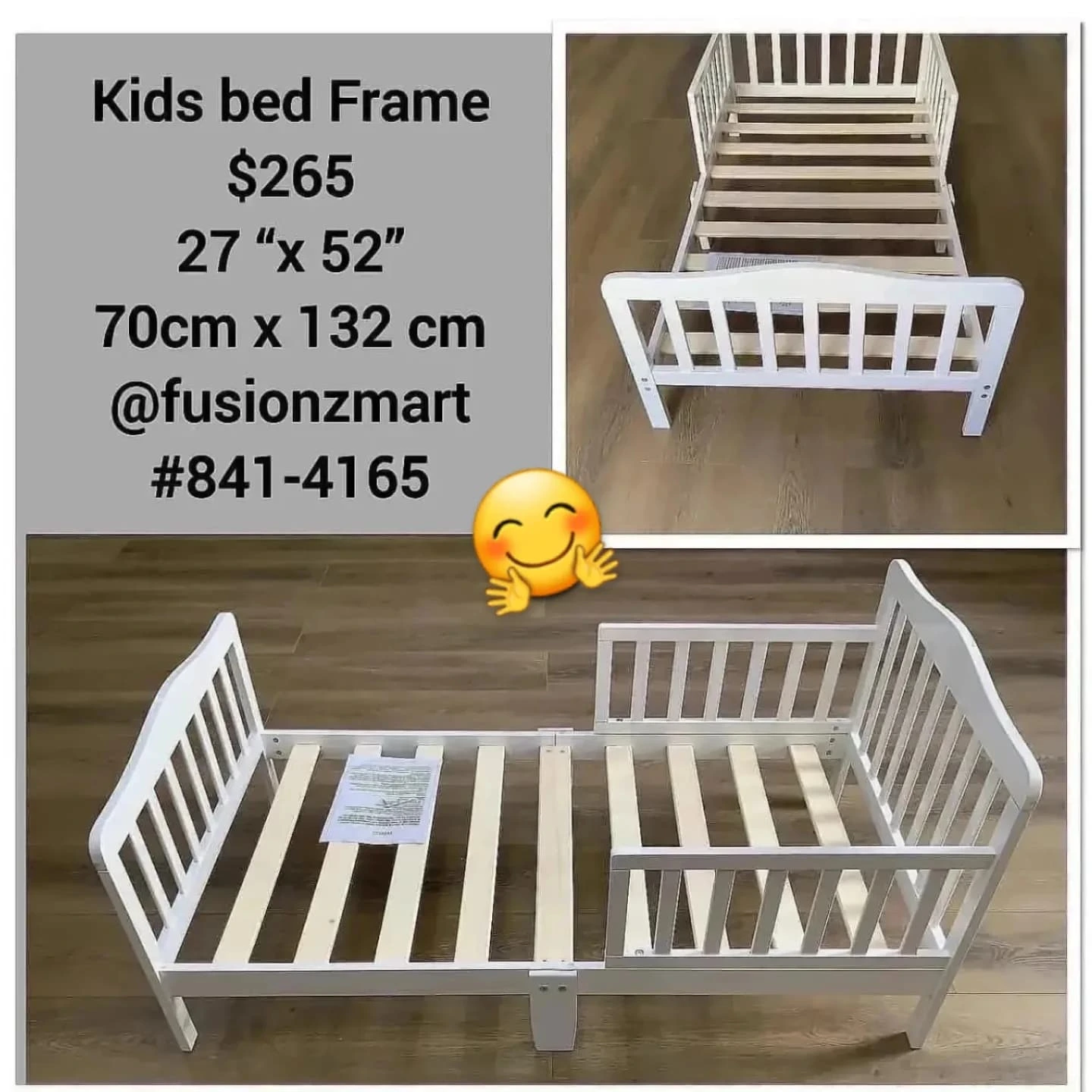 This sturdy white kids bed frame features a simple slatted design, perfect for a child’s room. Measuring 27″ x 52″ (70 cm x 132 cm), it offers a comfortable and durable sleeping solution. The bed’s classic color and design make it versatile for various room decors.