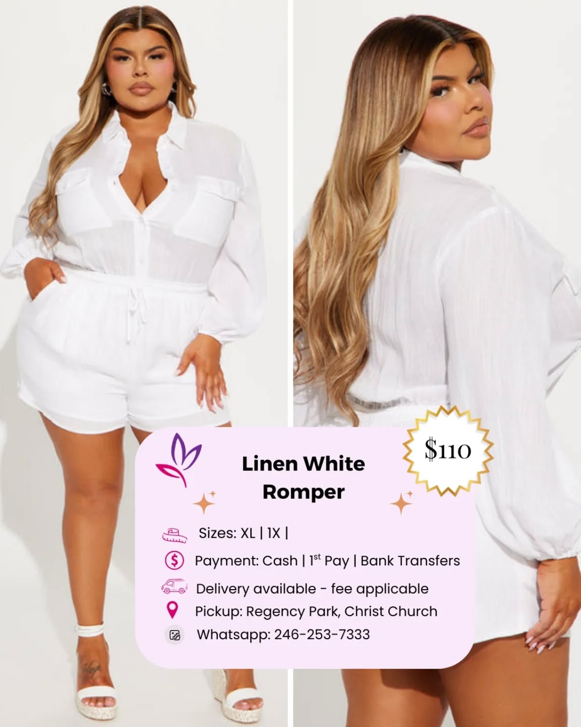 This Linen White Romper offers a chic and timeless style. Designed for plus-size women, it ensures both comfort and elegance. Ideal for casual outings, it provides a cool, confident look perfect for brunches and sunset strolls.