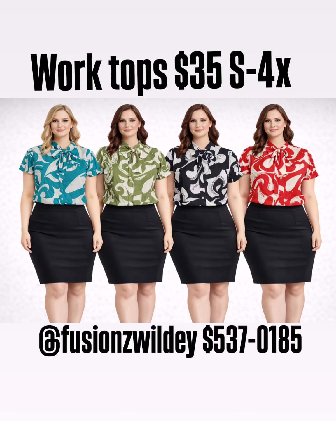 Elevate your professional wardrobe with these stylish women’s short-sleeved work tops. Featuring a chic abstract print and a sophisticated tie-neck collar, these blouses are perfect for the office. Available in sizes S-4X.
