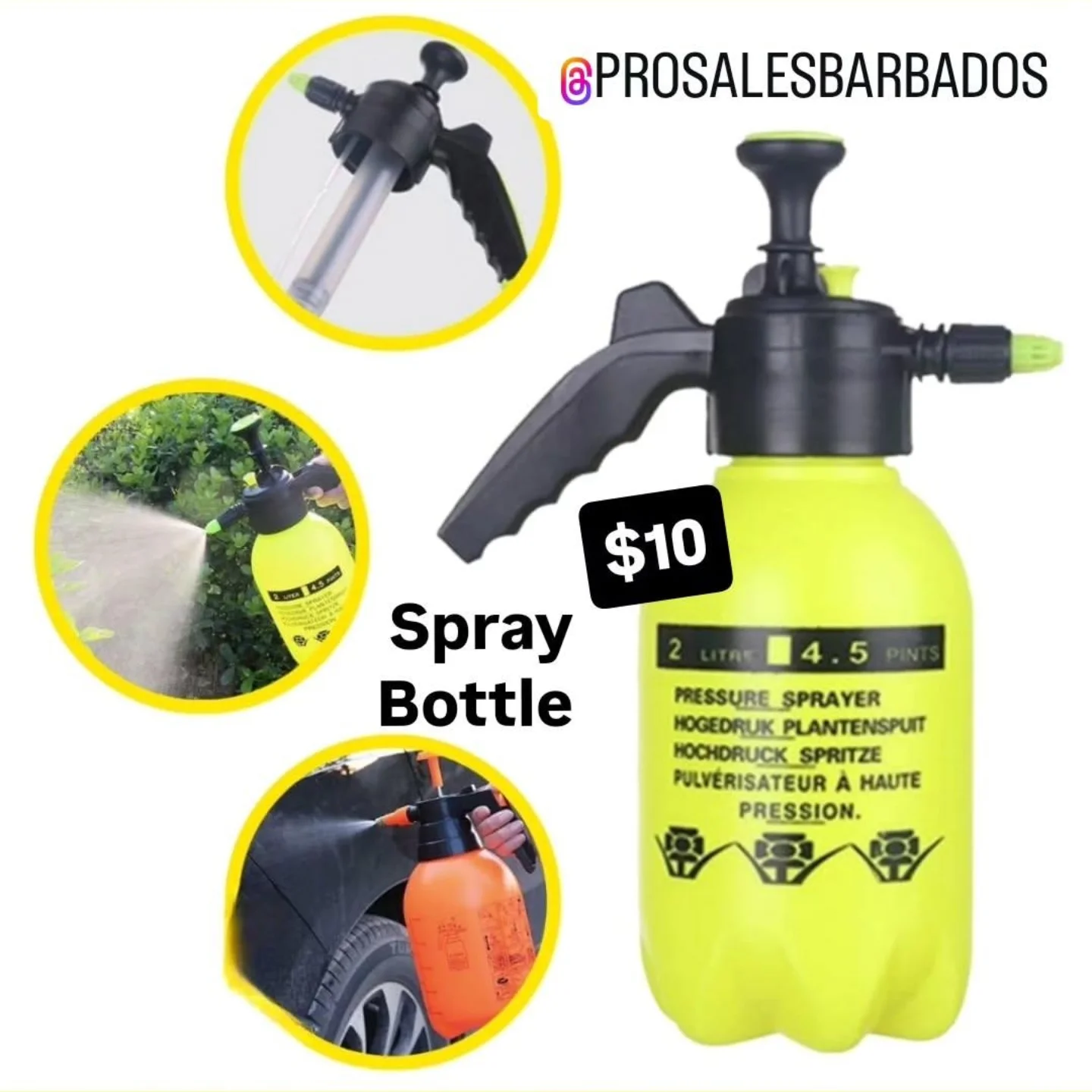 This pressure spray bottle features a 2-liter capacity and is designed for various spraying needs, such as gardening and car washing. It includes a manual pump for easy pressurization and an adjustable nozzle for precise spraying.